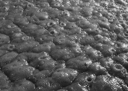 煙、泡、音、あらゆる感覚を研ぎすませて釜を見守り、絶妙のタイミングで三番釜から取出し撹拌する。